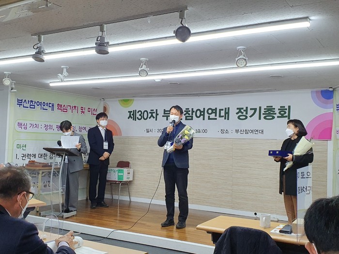 [부산=세계타임즈 장경환 기자] 부산시의회 기획재경위원회 도용회 위원장(더불어민주당, 동래2)이 24일 저녁7시 열린 부산참여연대 제30차 정기총회에서 ‘좋은 조례상’을 수상했다.