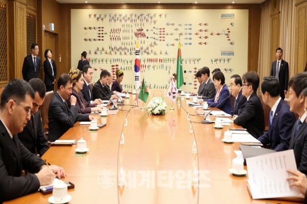 문 의장은 이어 “한국 기업들이 세계 최고수준의 기술력과 풍부한 경험을 바탕으로 투르크메니스탄의 에너지 고부가가치 산업화에 활발히 참여하여 호혜적 협력을 만들어나가고 있다”면서 “양국은 서로 윈윈(Win-Win)할 수 있는 여건이 많이 있다고 생각한다. 한국 기업들이 현지 활동을 하는데 어려움이 없도록 의회 차원의 적극적인 지원을 바란다”고 요청했다.