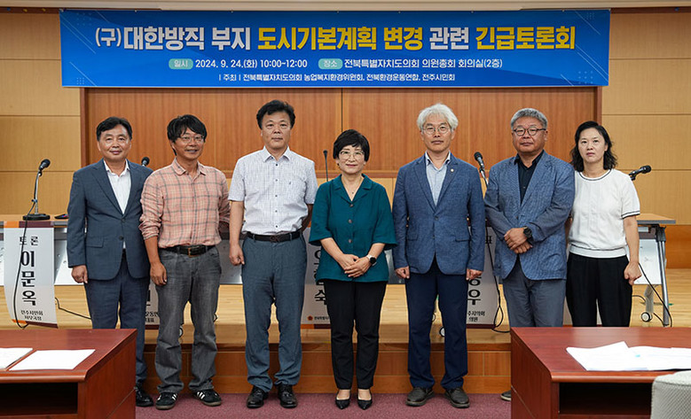 [전북특별자치도의=세계타임즈 이상호 기자] 전북특별자치도의회 오현숙 의원(정의당,비례)은 24일(화) ‘(구)대한방직 부지 도시기본계획 변경’을 주제로 긴급 토론회를 가졌다.