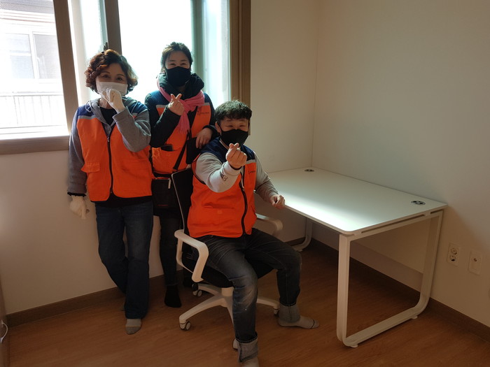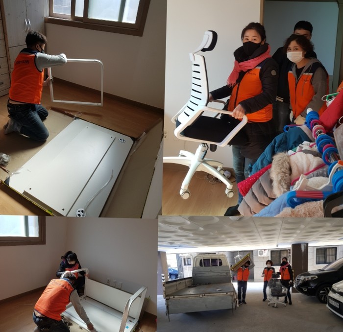 이날 봉사에는 유희자 단장, 오명옥 부단장, 우상연 회원들이 초등학교 1학년, 5살, 4살 다자녀 편부가정에 책상과 의자를 설치 하였다.