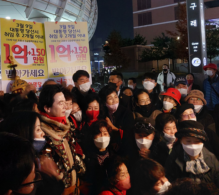 허 후보는 “오늘은 지난 8월 18일 행주산성에서 장군복을 입고 ‘내가 이 나라를 구하겠노라’는 말은 국민을 구하겠다는 뜻으로 3달이 지난 오늘 11월 18일 수능일에 수능에 지친 학생과 학부모님들에게 다시 희망의 약속 말씀을 드린다“고 말했다.