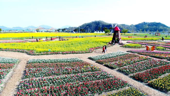 [창녕군=세계타임즈 최성룡 기자] 8일, 창녕낙동강유채축제 행사장인 남지체육공원이 노란 유채꽃으로 물들어 관광객을 맞이할 준비를 하고 있다.