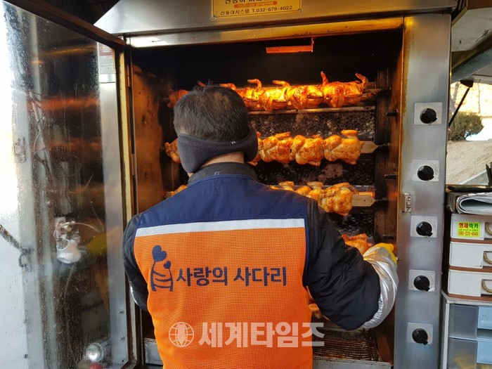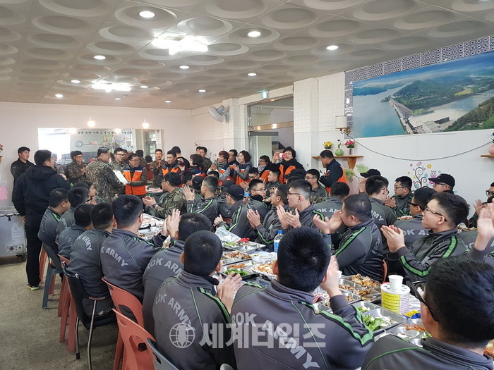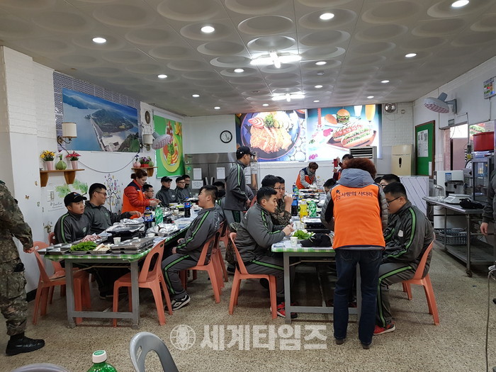 이날 봉사에는 신상일 바베큐 통닭봉사 회장, 유희자 나눔봉사단장을 비롯해서 회원 20명이 추운날씨에도 군부대에서 150마리 통닭을 만들어서 점심시간에 군 장병들에게 전달을 하였다.