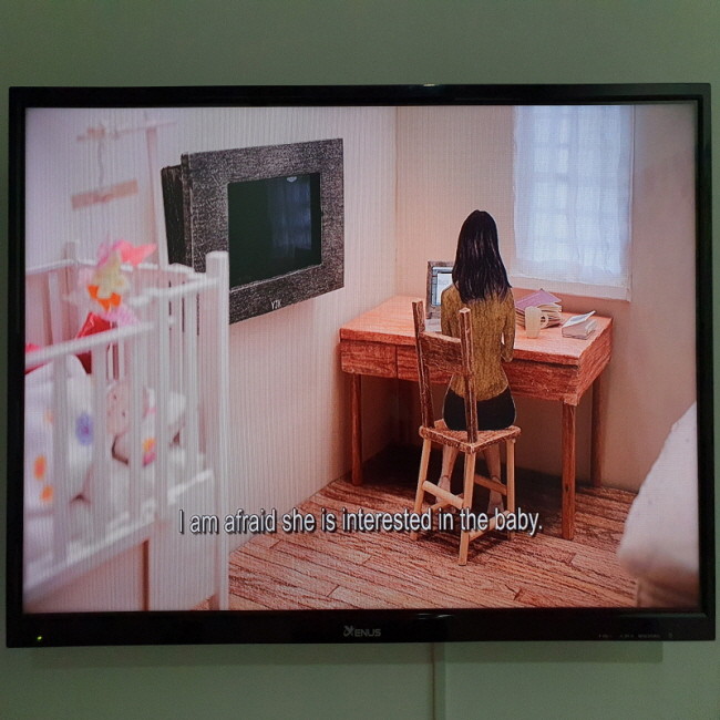 이번 전시에서 가장 인상 깊었던 작품, 마치 한 편의 공포영화를 보는 것 같았다. 보이지 않는 미지의 존재에게서 느끼는 두려움과 불안감. 영상 속의 시선은 타국의 유령처럼 느껴진다. 앞서 말했듯 우리 인간이 보이지 않는 존재를 얼마나 두려워하는지 느낄 수 있었다. 어쩌면 두려움과 불안은 내면에서부터 생기는데, 그 내면조차 내 눈에는 보이지 않으니 말이다.