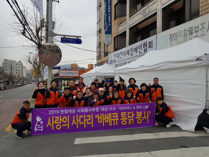 [대전=세계타임즈 이채봉 기자] 추운날씨에도 다양한 봉사를 꾸준히 하고 있는 대전시 SNS 봉사단체 사랑의 사다리 밴드(리더 이정제)는 22일 오전10시, (사)대전시지체장애인협회 중구지회(회장 김채린)의 2020년 떡나눔 및 떡국행사에서 점심급식 봉사와 바비큐 통닭 봉사로 우리 사회의 따뜻한 사랑을 전달 하였다.