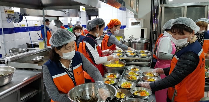 이날 국수봉사에는 한철웅 단장을 비롯해서 자원봉사 20명이 잔치국수 묵무침 부침개를 만들어서 점심식사 봉사를 하였다.