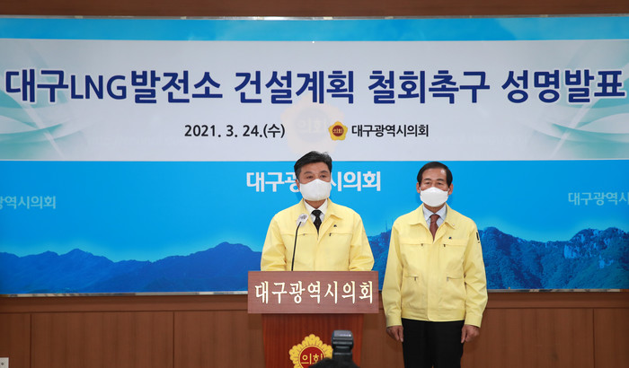 또, 대구시의회는 대전시가 지난 2019년 6월 ‘주민들이 원하지 않고, 지역사회에 부정적인 영향을 끼친다’는 이유로 LNG 발전소 건설 계획을 중단했던 것을 예로 들며 조속한 사업철회를 촉구했다.