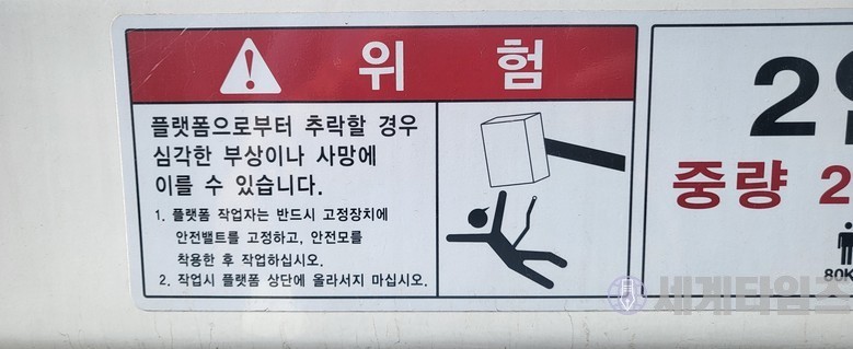 | ▲ 플랫폼에 탑승시 위험 경고 무시하고 고소 작업중 |
