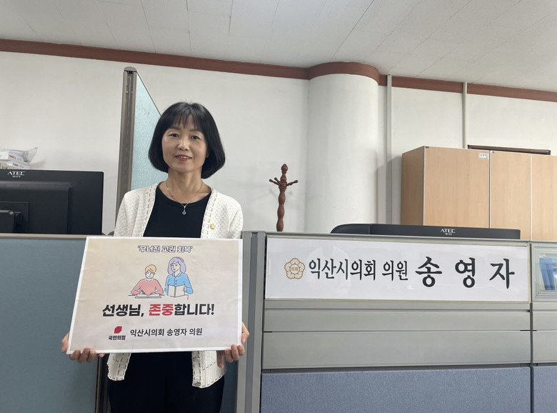[익산=세계타임즈 이정술 기자] 익산시의회 송영자 의원(비례대표, 국민의힘)이 지난 10일(화) 무너진 교권 회복을 위한 릴레이 챌린지에 참여했다.