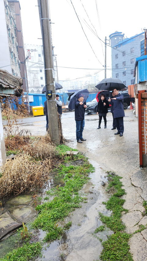 최종오 의장은 현장에서 직접 상습침수지역을 꼼꼼히 살펴보며 지역주민들의 불편사항을 청취하고 집행부 직원들과 함께 해결방안을 논의했다.