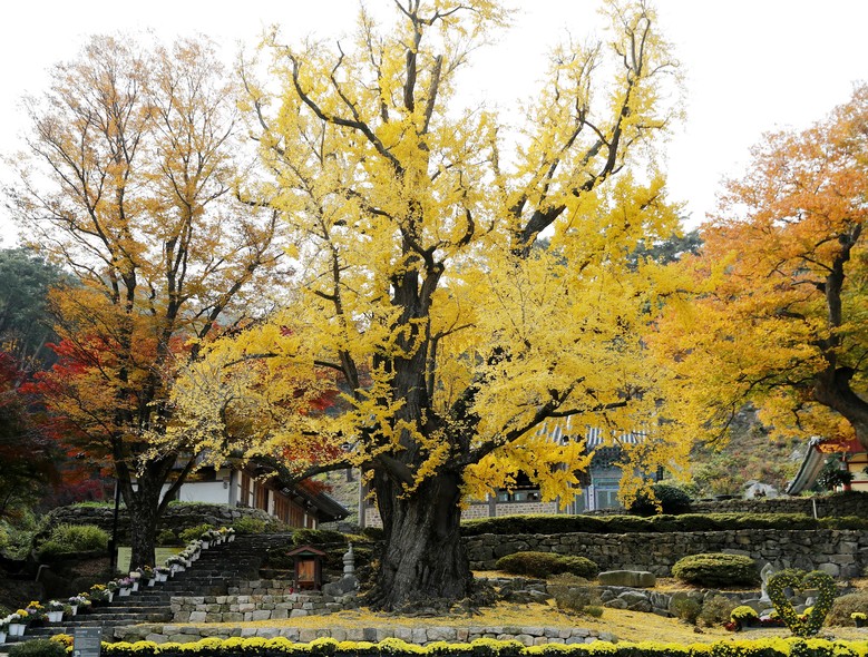노랗게 물든 은행나무와 고즈넉한 성곽이 어우러진 당진 면천읍성에는 천연기념물 제398호로 지정된 1100년 된 고목 은행나무가 있다.