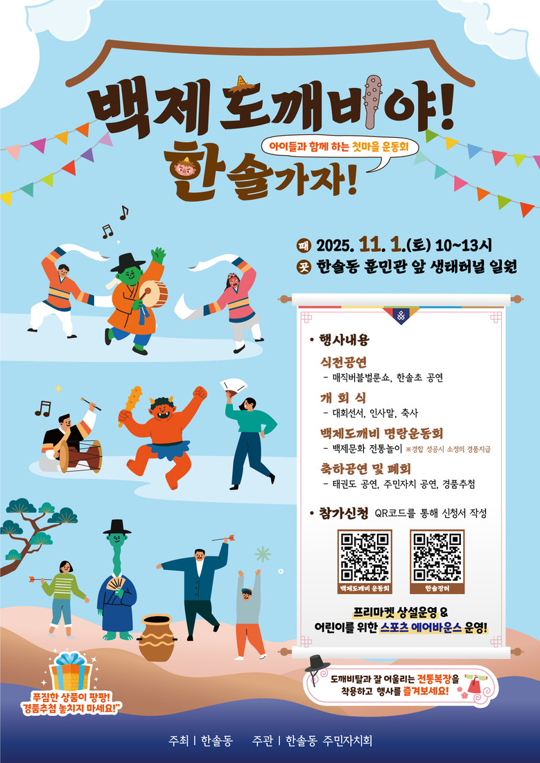 정은주 동장은 “운동회부터 백제문화축제까지 웃음과 활력이 넘치는 하루가 될 것”이라며 “주민들의 자발적인 참여와 관심이 한솔동 공동체 문화를 더욱 단단하게 만들 것”이라고 밝혔다.
