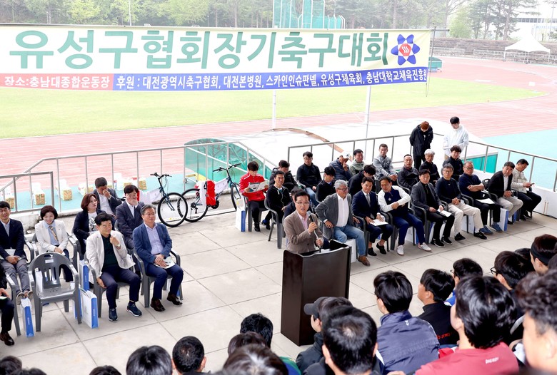 유성구 체육회에서 주최한 이날 대회는 지역을 대표하는 단체·기관장, 동호인 및 대회 관계자 500여 명이 참석한 가운데 유공자 표창을 시작으로 유성구 축구협회장의 대회사, 주요내빈 축사, 선수대표 선서 후 본격적인 대회가 진행됐다.