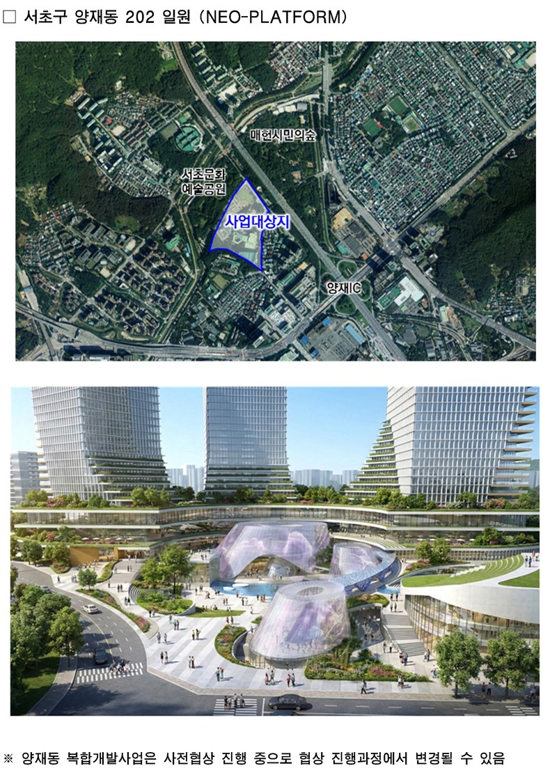 ‘네오 플랫폼’은 AI 특구 핵심 거점으로, 첨단기술과 자연이 어우러진 입체복합 도시를 구현이 콘셉트다. 저층부는 AI와 관련된 각종 전시·체험 공간이 상시 운영되며, 메인 타워 최상층에는 서울 전역을 한눈에 조망할 수 있는 정원형 실내전망대가 들어설 계획이다.