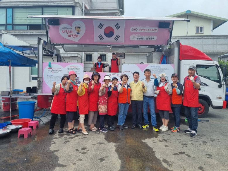 [강원도 세계타임즈=김민석 기자] 강원특별자치도의회 김용복 농림수산위원장은 제6호 태풍「카눈」피해로 절망에 빠진 지역주민을 위하여 사회복지법인 광명시사회복지협의회 광명희망나기운동본부 “사랑의 짜장차”(대표 오종현) 지원을 요청하여 8월 13일(일)부터 8월 14일(월)까지 이틀간 고성군(현내면, 거진읍) 2곳에서 피해지역 주민과 자원봉사자 등 600여 명에게 짜장면을 대접했다.