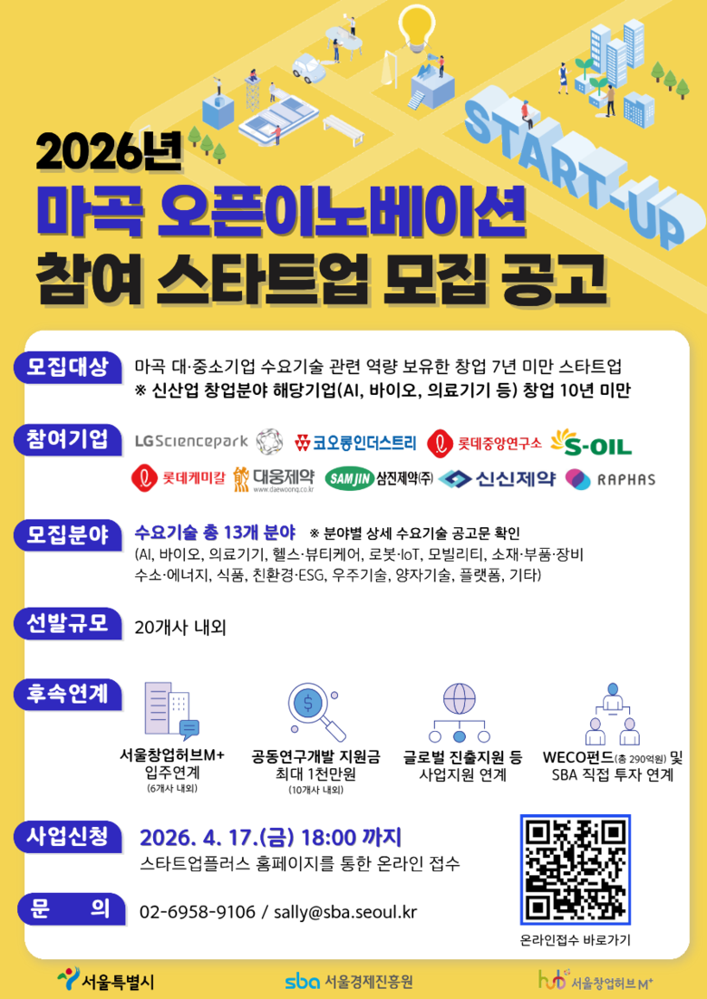 이수연 서울시 경제실장은 “마곡산업단지는 국내 최고 수준의 연구개발 인프라를 기반으로 스타트업이 성장하기에 최적의 환경”이라며, “대기업과의 협업을 통해 유망 스타트업이 빠르게 성장할 수 있도록 지원을 확대하고, 마곡 내 대·중소기업과의 동반성장을 적극 추진하겠다”고 밝혔다.