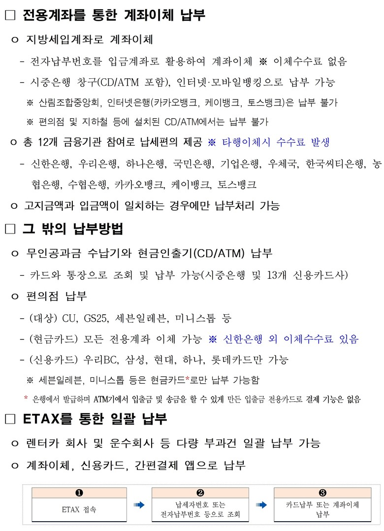 - 전자송달·자동이체 신청 시 1,600원 공제 혜택 제공 - 외국인·정보취약계층 위한 서비스 제공 등 다양한 납부수단 마련