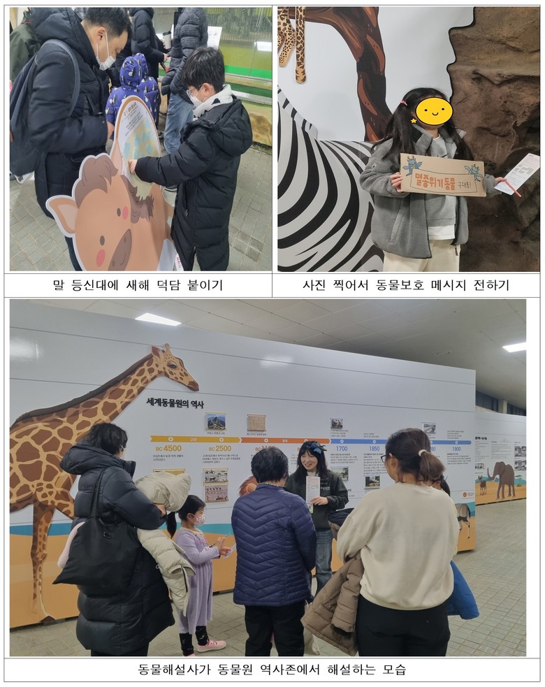 - 얼룩말 등 ‘말’ 동물해설과 전통놀이 윷놀이 참여, 멸종위기 종보전 실천 약속 진행