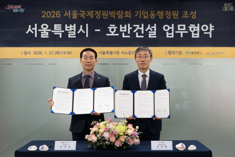 [서울 세계타임즈=이장성 기자] 서울시는 2026년 5월 1일 서울숲에서 개막하는 서울국제정원박람회를 앞두고, 호반건설과 ‘기업동행정원’ 조성을 위한 업무협약(MOU)을 1월 27일 체결했다.