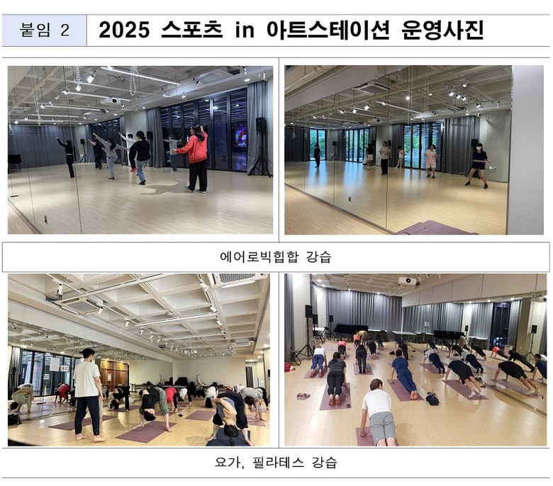 「스포츠 in 아트스테이션」은 2023년부터 시범 및 단계적 확대 운영을 거치며, 지난 3년간 총 2,120회 강습을 운영하고 46,000명의 시민이 참여하는 등 일상 속 생활체육 참여 기반을 안정적으로 확장하는 성과를 거두었다.