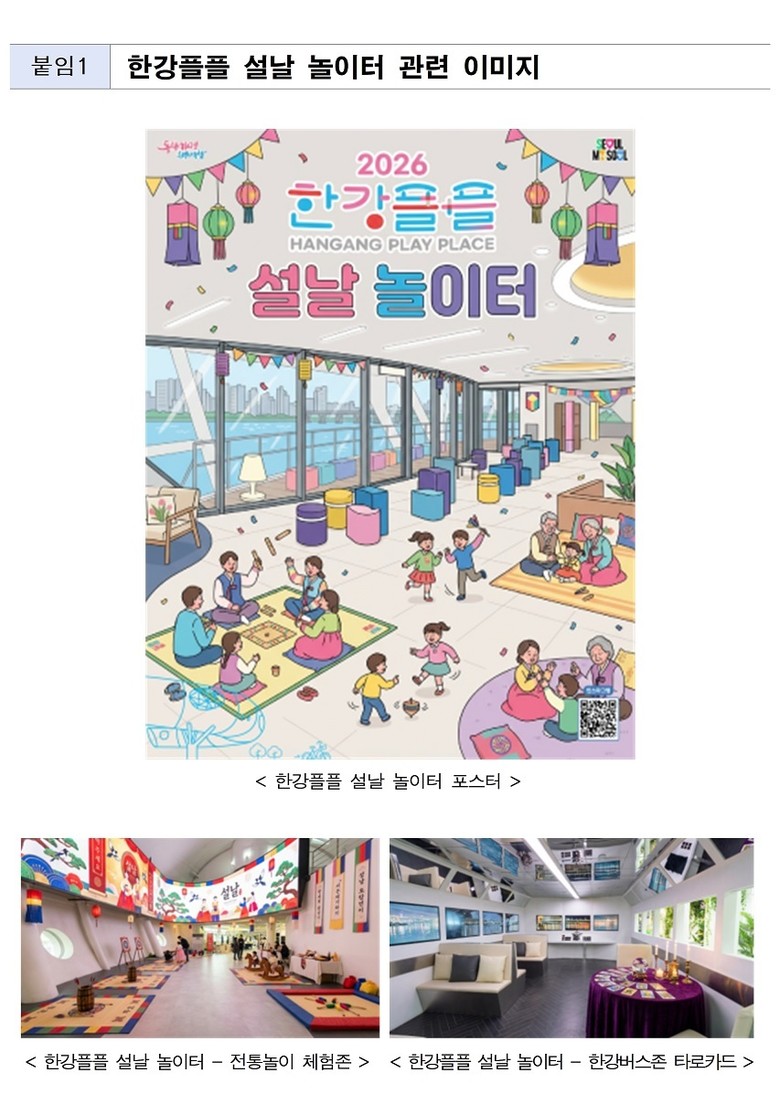 - 2.14.(토)~18.(수) ‘한강플플’ 설날 놀이터, 2.16.(월) ‘서울함공원’ 윷놀이 팀전