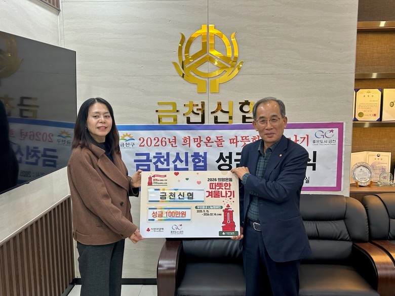 지난달 24일에는 금천신협(이사장 김정열)이 ‘2026 희망온돌 따뜻한 겨울나기’ 성금 100만 원을 기탁하며 지역사회를 향한 따뜻한 나눔에 동참했다.