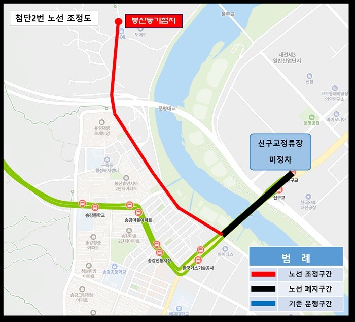 - 첨단 2번 1월 1일부터 신구교 미경유, 봉산동기점지로 운행 -