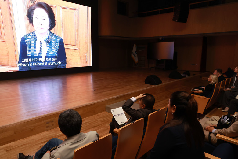 도청 문화홀에서 진행된 영상자서전 사업 보고에서 NYF 관계자들은 영상자서전 채승훈 총괄감독의 사업 소개에 이어, 도민 촬영서포터가 직접 제작한 ‘1953년생 김미정’ 영상을 함께 시청했다. AI 기술로 한 도민의 삶을 섬세하게 담아낸 영상 앞에 관계자들은 주의 깊게 바라봤다.