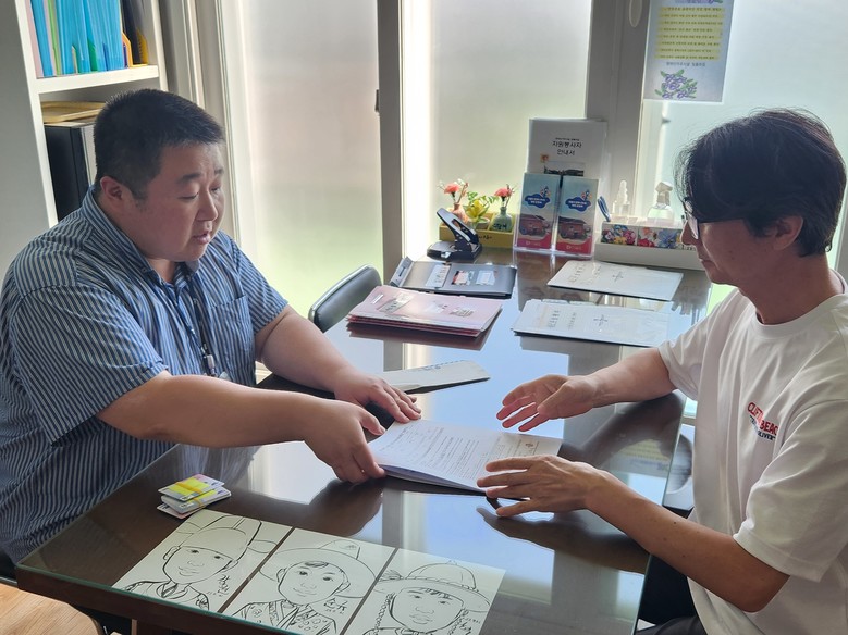 | ▲ 논산시 장애인거주시설 관계자를 대상으로 민생회복 소비쿠폰 운영 현황을 점검하는 모습 |