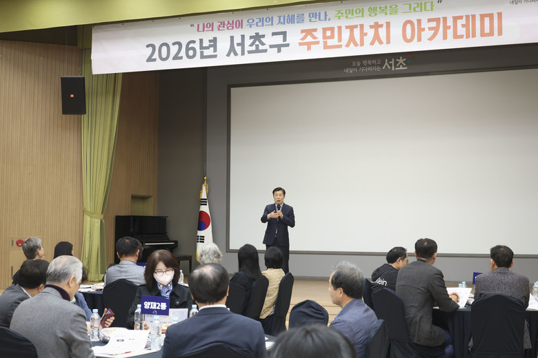 [서초구 세계타임즈=이장성 기자] 서울 서초구(구청장 전성수)는 3월 20일과 25일 이틀간 서초구청 2층 대강당에서 ‘2026년 서초구 주민자치 아카데미’를 개최했다고 밝혔다.