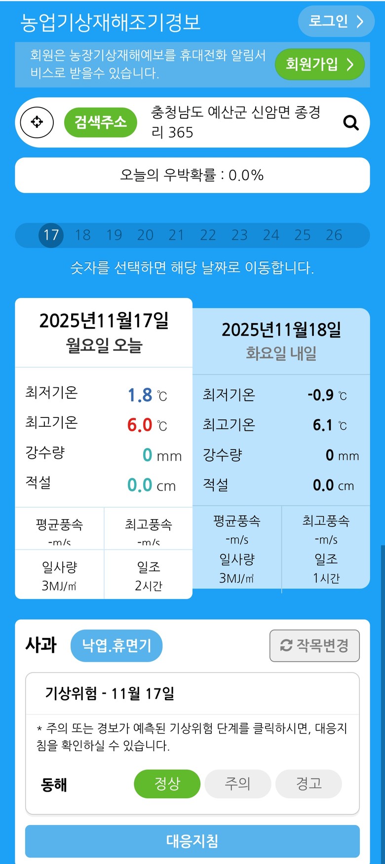 이어 “농업인들도 시설 안전점검, 보온·배수 관리, 조기경보서비스 가입 및 활용 등에 적극 참여해 줄 것을 부탁드린다”고 말했다.
