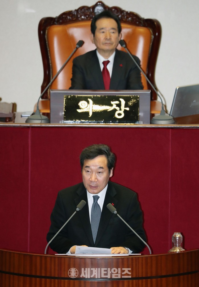 6일 오전 서울 여의도 국회 본회의장에서 열린 제354회 국회(정기회) 제17차 본회의에서 2018년도 새해 예산안이 통과되자 이낙연 국무총리가 감사 인사말을 하고 있다. 2017.12.06.