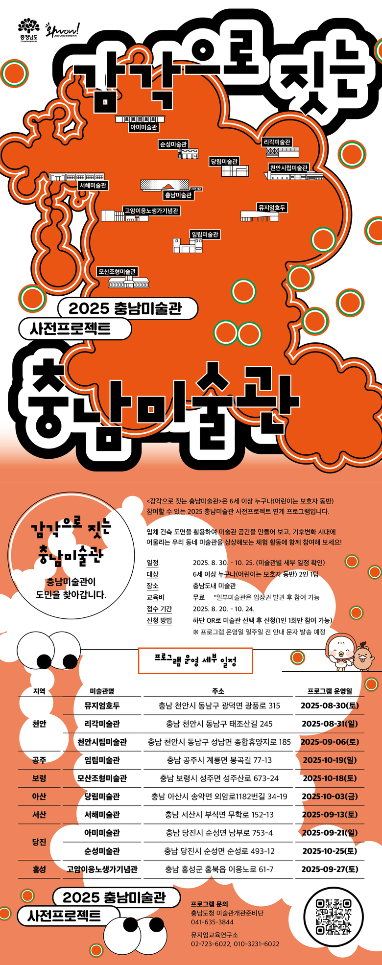 이 기간 도내 미술관을 소개·안내하는 ‘충남 미술관 지도’를 통해 누구나 쉽게 미술관을 찾고 즐길 수 있도록 미술관 정보를 제공한다.