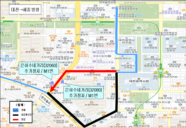 이번 정류장 확대는 시민들의 교통 수요와 의견을 반영해 추진된 것으로, 세종과 대전 생활권을 잇는 M1 노선의 접근성이 한층 강화될 전망이다.