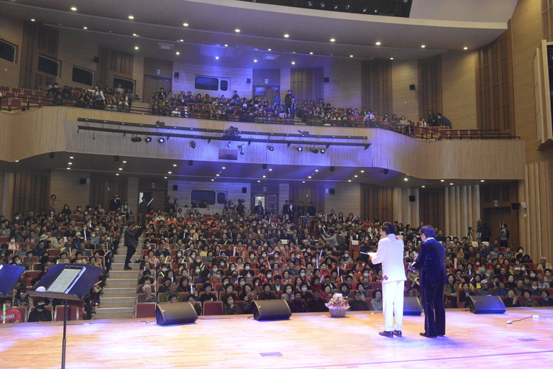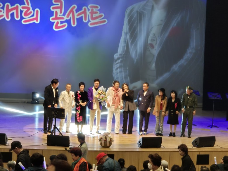 축하무대를 만들어준 밀양 시나브로 색소폰연주와 밀양가수 박해숙에 이어 첫 무대에 오른 가수 박태희씨는 별빛 같은 나의 사랑아(임영웅) 용이(조항조) 가 이어질때 전국에서 참여한 펜클럽 회원들의 함성과 뜨거운 열기로 가득찾다.