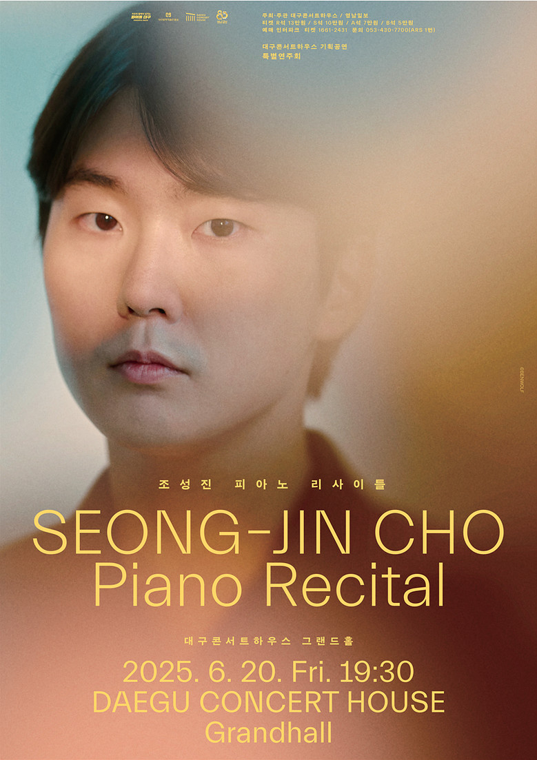 ▸ 6월 20일(금) 오후 7시 30분 대구콘서트하우스 그랜드홀 [대구 세계타임즈=한윤석 기자] 영남일보 창간 80주년을 맞아 대구콘서트하우스와 영남일보가 공동 개최하는 특별연주회 ‘조성진 피아노 리사이틀’이 6월 20일(금) 오후 7시 30분 대구콘서트하우스 그랜드홀에서 개최된다.