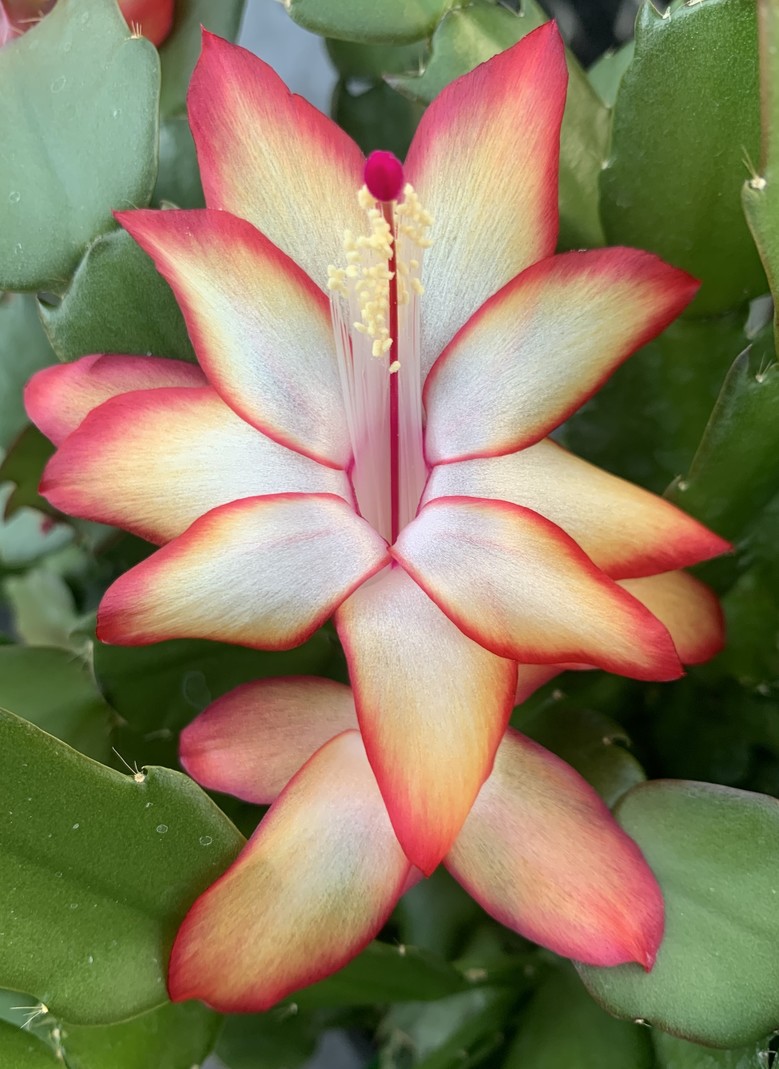 게발선인장은 브라질 열대우림이 원산지인 식물로, 나무나 바위에 붙어 자라며 겨울철에도 꽃을 피운다.