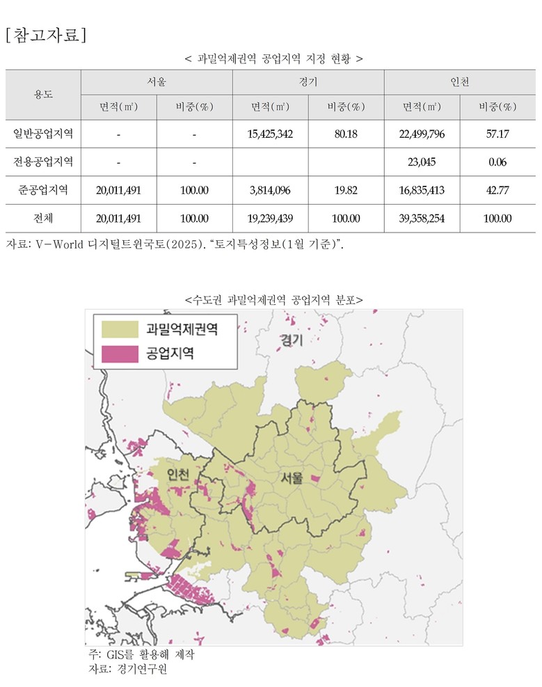 실제로 서울시는 2005년부터 2025년까지 20년간 공업지역 면적이 28.28%(7.89㎢) 감소했으며, 대체 지정 없이 해제된 물량은 소멸됐다. 인천시는 넓은 공업지역을 보유하고 있으며 간척지를 활용한 공업지역 재배치(대체 지정)를 통해 공업지역을 공업용도로 적극 활용하고 있다. 반면 경기도 시군 대부분은 공업지역을 경제적 기반으로 인식해 추가 물량을 지속적으로 요구하고 있다.