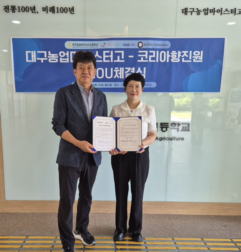 이어 대구농업마이스터고와 코리아향진원은 지난 3년간 교류를 통해 쌓아온 상호 신뢰를 바탕으로 6월 30일 협약 체결을 통해 협력을 더욱 강화하기로 했다.
