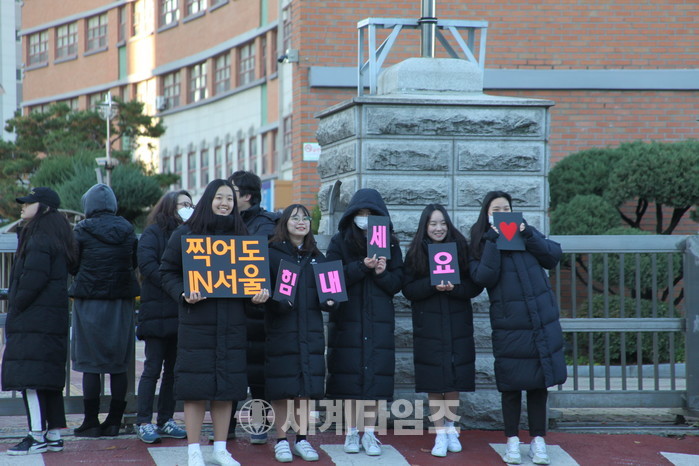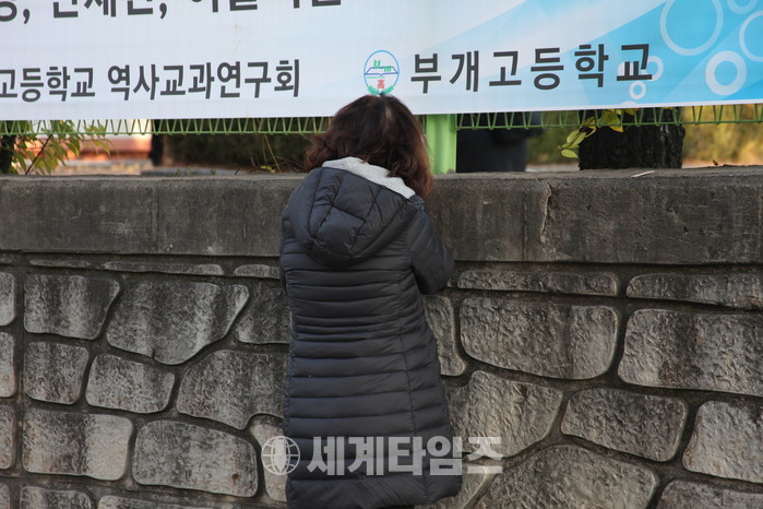 모든 학교 앞 부모들의 모습이었겠지만 인천 부개여고 학부모들은 자녀를 배웅하고도 교문앞에서 딸들이 들어간 학교안을 바라보며 오랫동안 눈을 떼지 못하며 시험 시작 종이 울릴때까지 발걸음 조차도 돌리지 않고들 있었다.