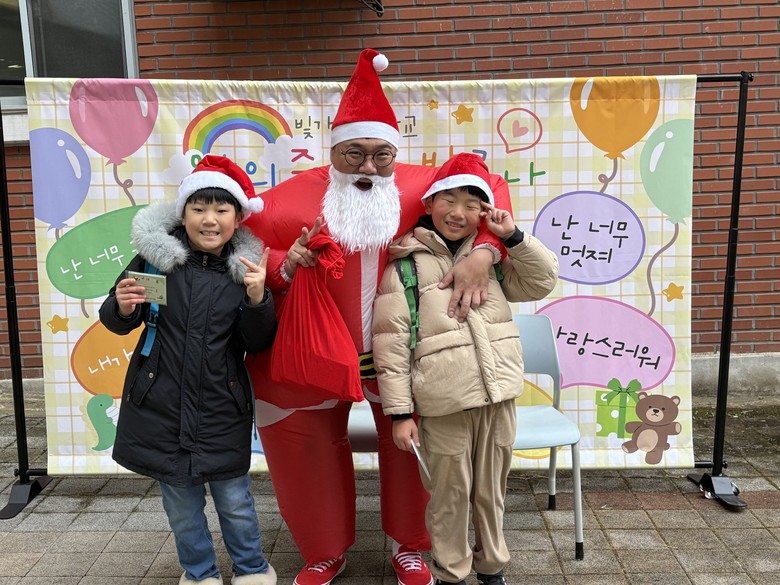 이날 행사는 산타 복장으로 의상을 맞춘 학부모들의 학생 등교 환영을 시작으로, 미리 준비한 선물 증정이 이어지는 등 학생들에게 나눔과 감사의 의미를 담은 성탄절 추억을 미리 만들어 주었다. 특히 ‘난 너무 사랑스러워’ 등의 글이 담긴 ‘산타와 함께하는 포토존 사진 촬영’은 학생들의 큰 관심을 받았다.