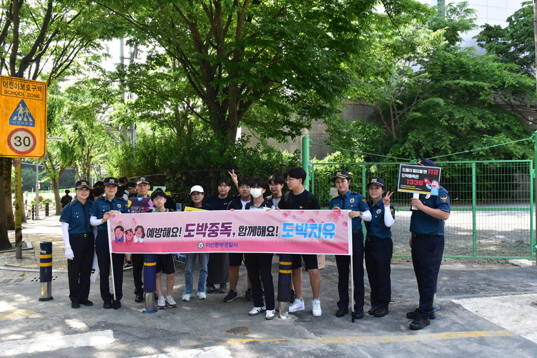 이날 캠페인에는 여성청소년과장, 학교전담경찰관(SPO) 등 경찰관 8명과 weecafe다온 센터장, 자원봉사 청소년 등 10여 명이 참석하여 하교하는 청소년들에게 “사이버도박.마약은 범죄입니다”라는 홍보물을 나누어 주고, 시외버스터미널 주변에서 학교 밖 청소년 선도 활동도 같이 진행하였다.