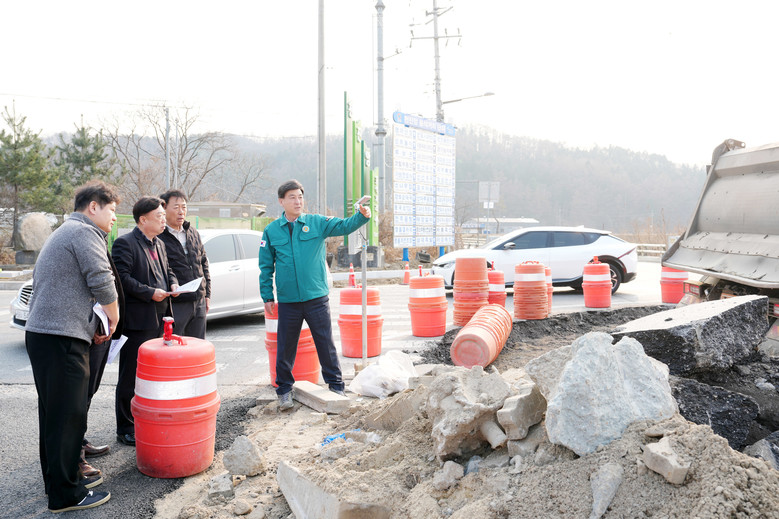 이날 현장에서는 회전교차로 조성 공정 진행 상황과 차량 및 보행자 동선 계획, 공사 중 안전 관리 대책 등을 중점적으로 점검했다. 또한, 공사로 인한 시민 불편을 최소화할 수 있도록 철저한 현장 관리와 안전 확보를 당부했다.