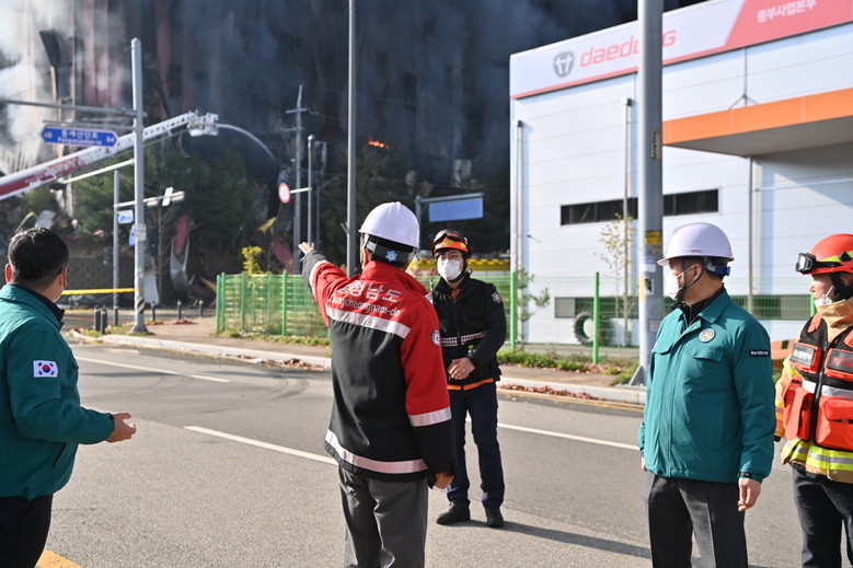 이 자리에서 김 지사는 물류센터 내부 물품 현황, 도시가스 차단 상황, 진압 계획, 주민 통제 등을 물으며, 인력·장비 추가 투입을 지시했다.