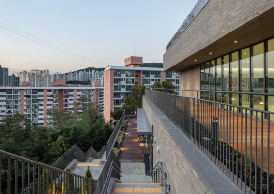 지하 1층부터 지상 2층까지 각각의 층이 도로와 직접 연결돼 다양한 방향에서 자연스럽게 진입할 수 있도록 설계됐다. 중심부의 중정은 윗마을과 아랫마을을 이어주는 공공 계단과 연결돼 지역 공동체(커뮤니티)의 유기적인 흐름을 만들어낸다.