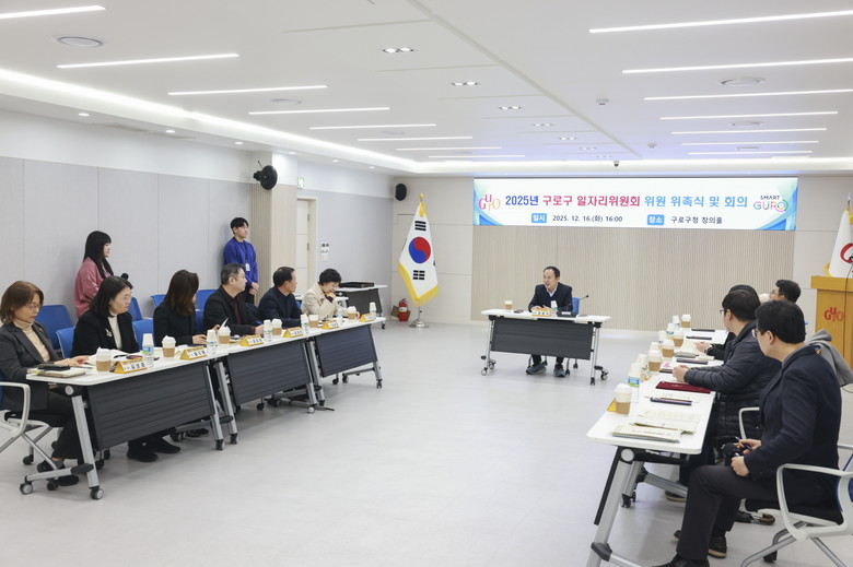 [구로구 세계타임즈=이장성 기자] 구로구(구청장 장인홍)가 지난 16일 구청 창의홀에서 ‘2025년 구로구 일자리위원회 위촉식 및 회의’를 개최했다.