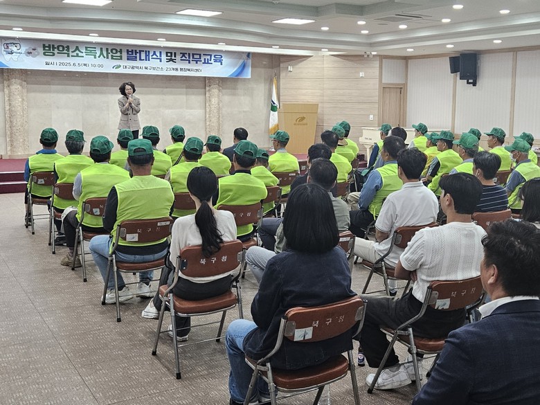[북구 세계타임즈=한윤석 기자] 대구 북구보건소(소장 이영숙)는 2025년 방역소독사업 발대식을 6월 5일(목) 오전 10시 북구청 대회의실에서 개최하고 본격적인 하절기 동 방역에 돌입한다.