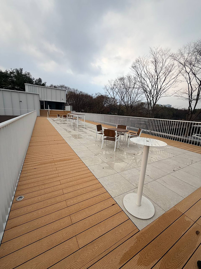 하늘마당에서 예식을 진행하고, 뮤직홀 앞 잔디마당을 연회 장소로 활용할 수 있다.