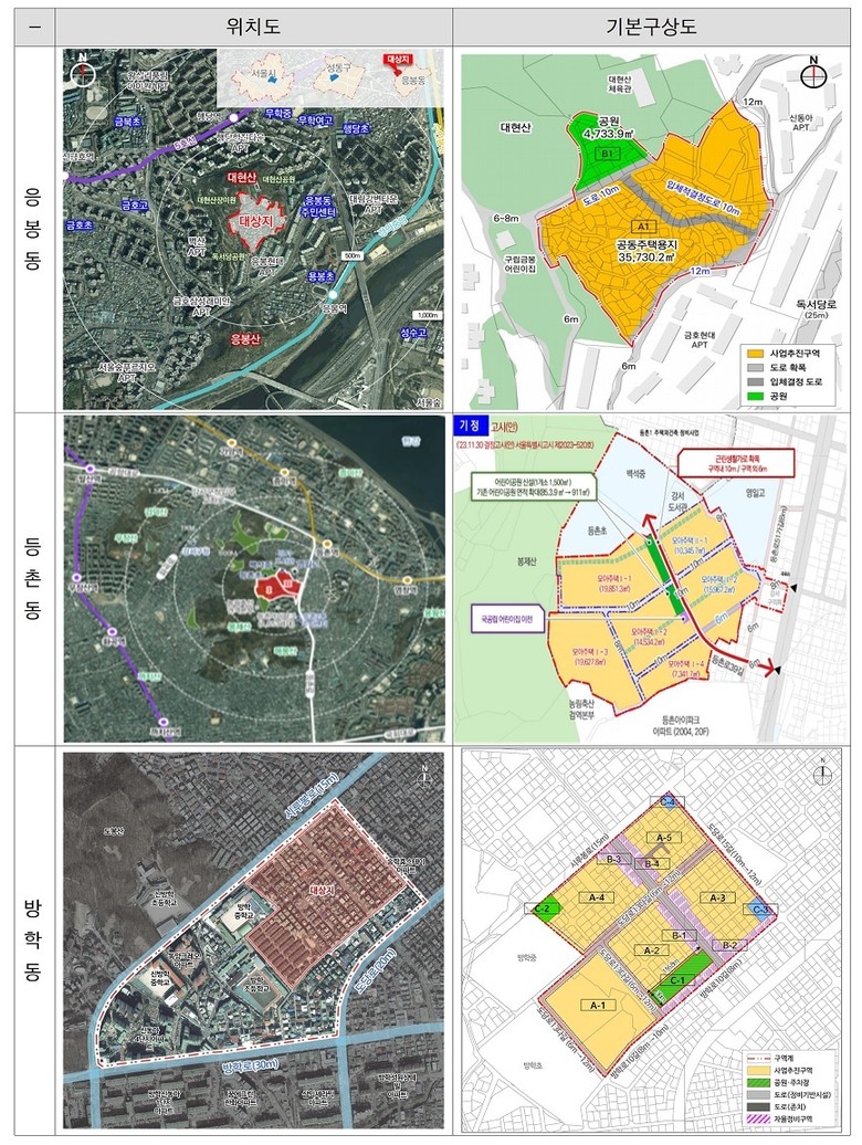 이 가운데 등촌동 모아타운은 2개 구역이 조합설립 인가를 완료했으며, 풍납동·등촌동·응봉동 모아타운은 공공참여를 통해 사업구역을 4만㎡ 미만으로 확대하여 추진 중이다.
