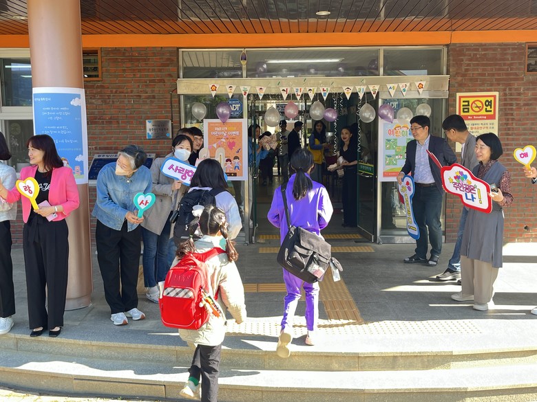 [광주 세계타임즈=손권일 기자] 광주양산초등학교에서 3일 오전 8시 교직원과 학부모회, 동부교육지원청이 함께 ‘사랑의 등교맞이’ 행사를 진행했다.
